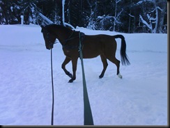 Idag har jag hunnit med både att rida Pion och att tömköra Leo! Och Olivia sover fortfarande... Pion gick finfint idag. Igår kändes hon nämligen lite trött så det blev ett lätt joggingpass - man vet ju själv hur det kan vara vissa dagar. Men idag var energin tillbaka. Jag fokuserade enbart på lösgörande arbete på stora böjda spår eftersom hon känts lite stel efter den korta vilan. Det mesta släppte nu så jag är jättenöjd. Lille Leo har ju fått vila han med, och tömkört har jag inte gjort på jättelänge eftersom jag tränat med sadel inför uppsittningen sista tiden. Idag blev det ett lätt pass i alla fall, och han skötte sig precis så bra som om det var igår jag körde senast. Förvissa var han VÄLDIGT busig från början, jag vet inte vad han höll på med...han försökte springa och bita sig i knäna samtidigt...såg väldigt lustigt ut. Tyvärr kunde jag inte få upp kameran då. Vi har ju tränat galoppkommando på lina ett tag, så jag tänkte testa på töm också: